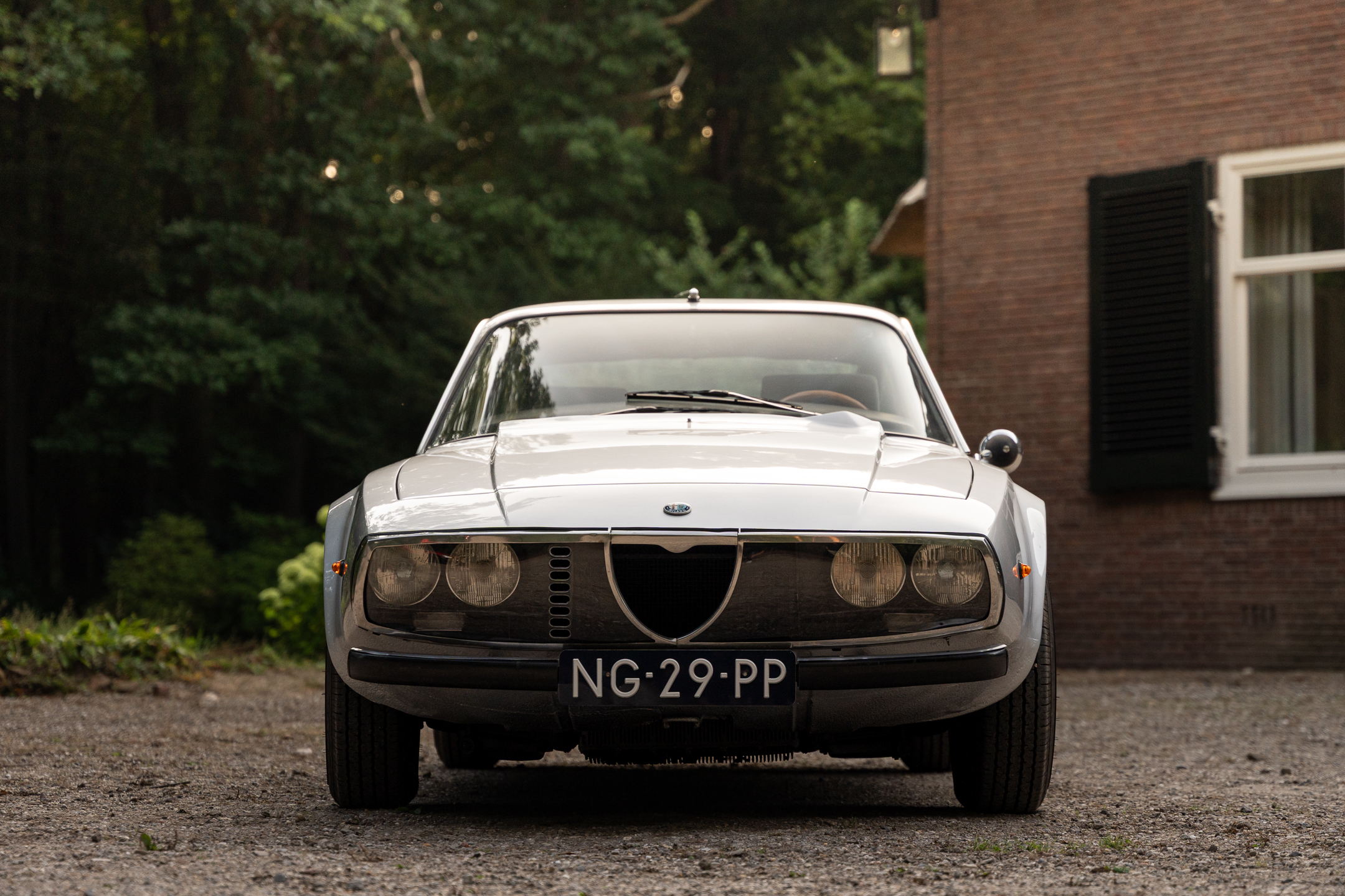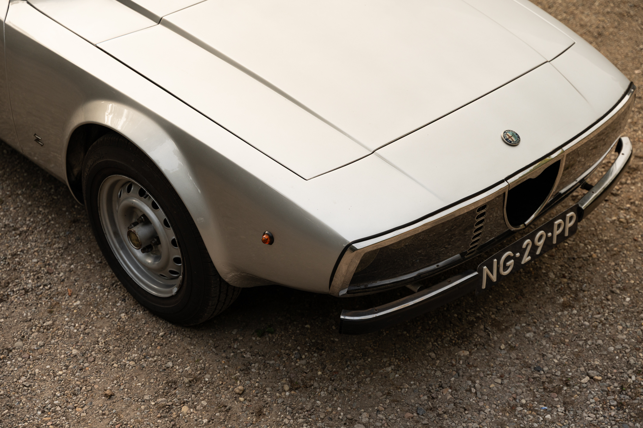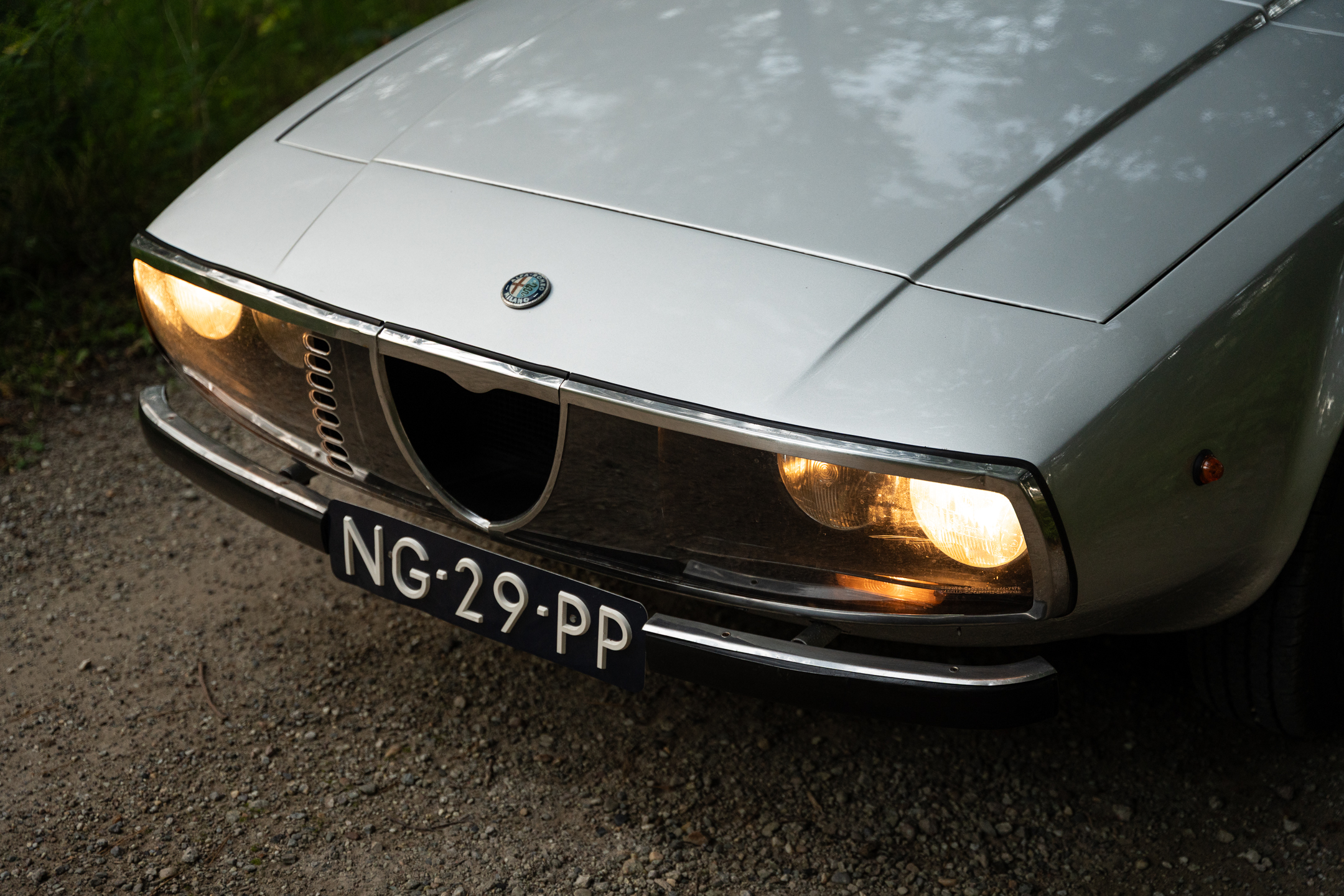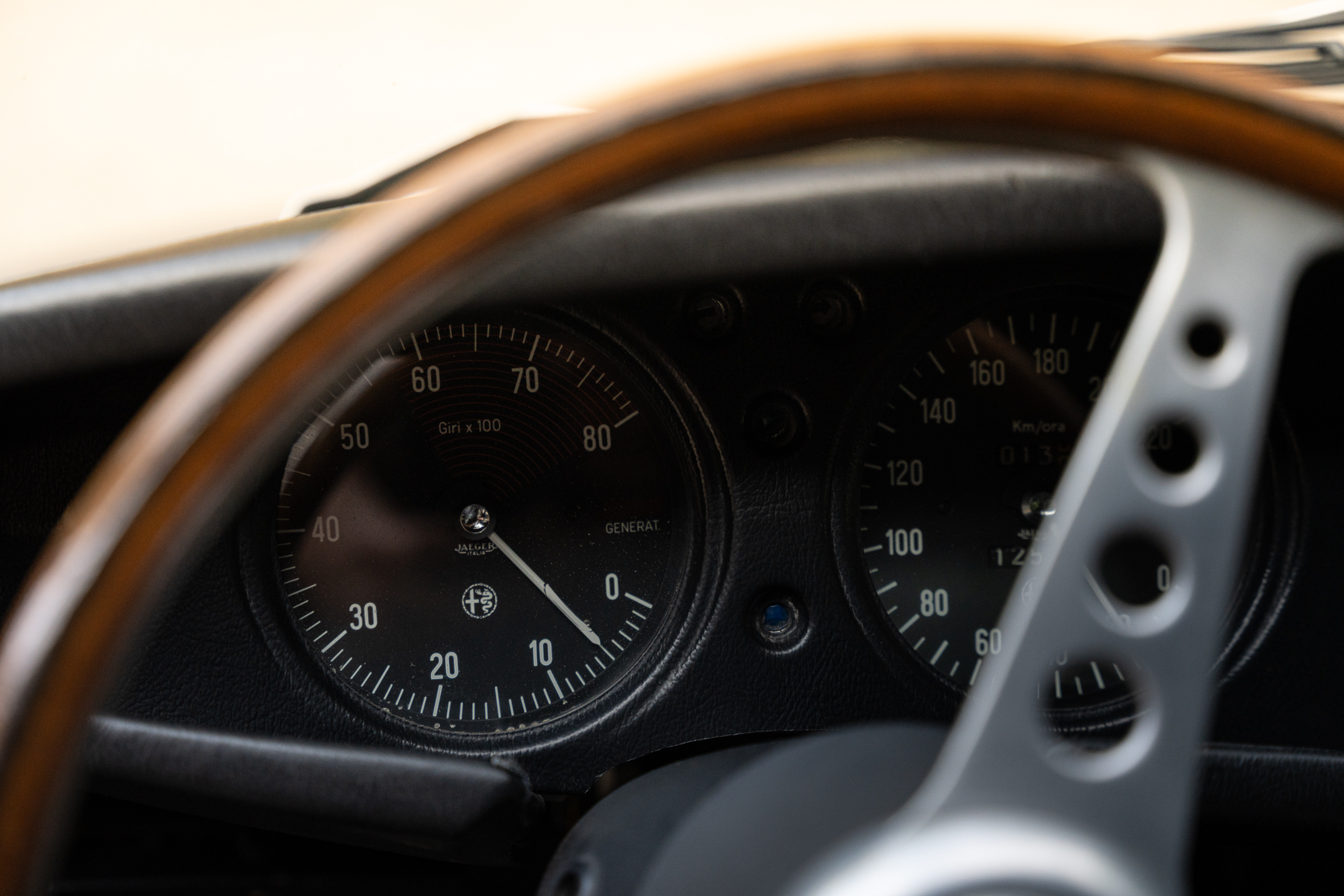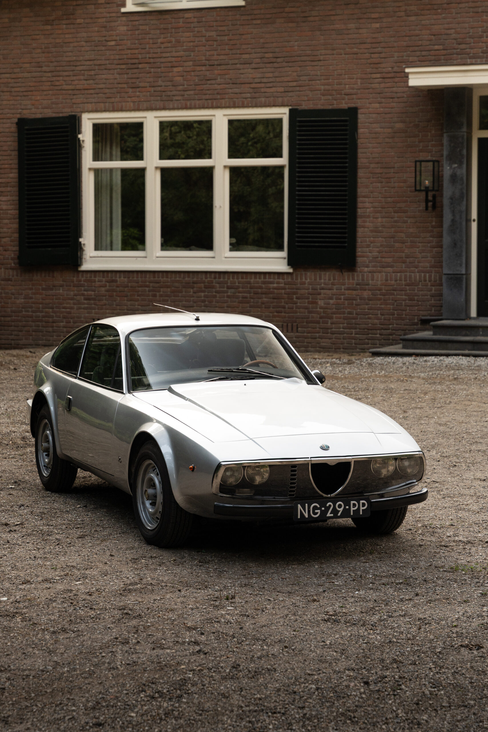 De 1300 Junior Zagato werd voor het eerst gepresenteerd op de Turijn Motor Show van 1969 en was Alfa Romeo’s eerste hatchback. Maar het was meer dan een designexercitie, het was een technisch hoogstandje. De eerste 200 exemplaren waren extra bijzonder: zij kregen lichtmetalen deuren en motorkap, waardoor het gewicht nog verder werd gereduceerd. Dit was een kostbare productietechniek die later werd vervangen door conventioneel staal om de kosten te drukken. Nummer 99, waar we vandaag naar kijken, behoort tot deze exclusieve eerste serie.