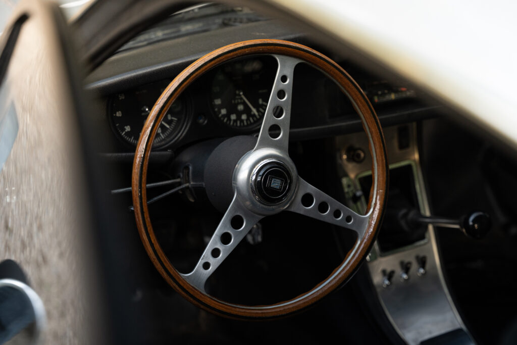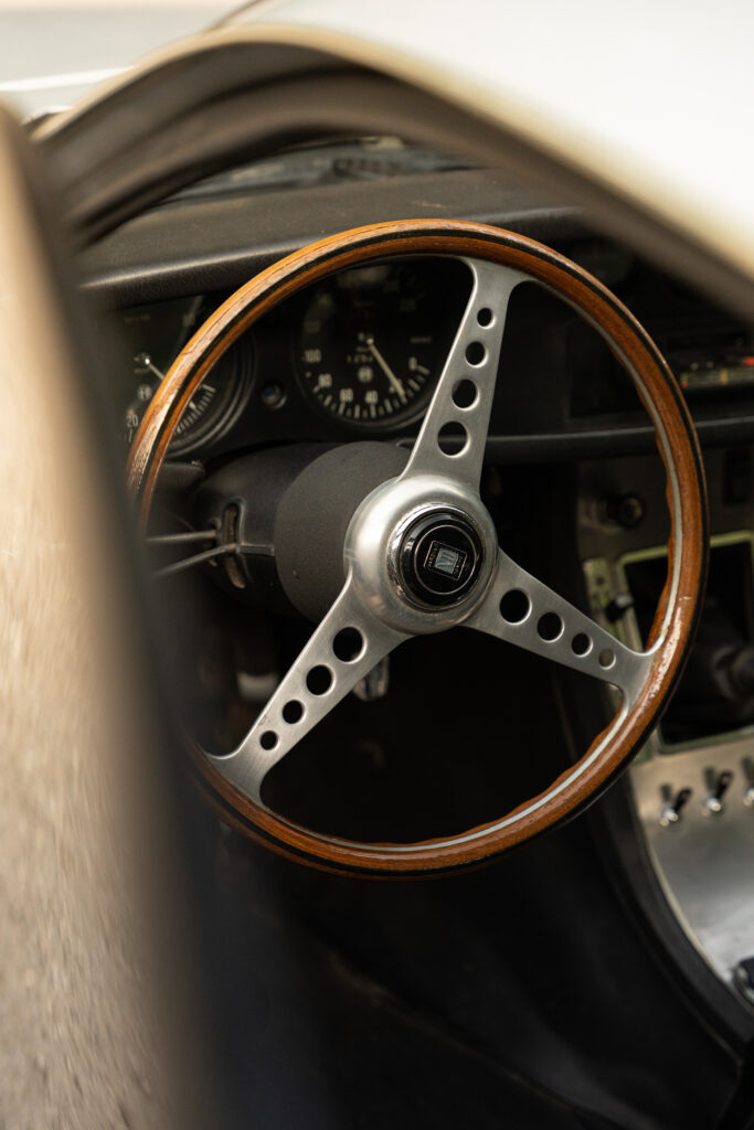 Wat de Junior Zagato echt bijzonder maakt, zijn de details die in 1970 ronduit revolutionair waren: De koplampen verdwijnen achter plexiglas en zijn weggewerkt in de koets – een designtruc die decennia later pas mainstream zou worden. De koeling gebeurt door een elegant ontworpen wigvormige opening in de neus. De elektrisch bedienbare achterklep was een technisch hoogstandje voor die tijd. Het dient ook meerdere doeleinden. Niet alleen geeft het toegang tot de bagageruimte, in de open stand zorgt het ook voor extra ventilatie. Perfect voor die warme Italiaanse zomers.